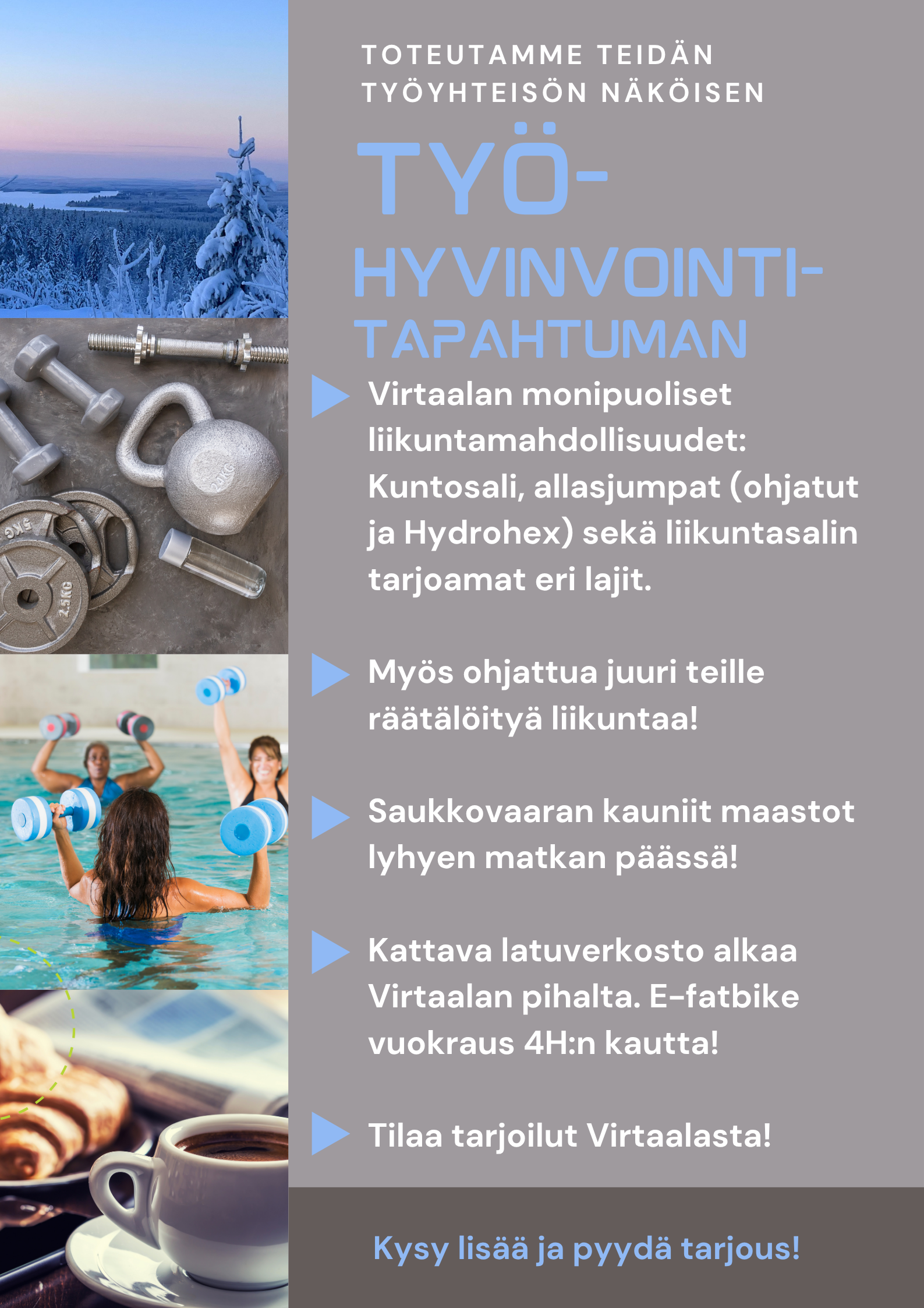 - Virtaalan kuntosalin laitteet sopivat erityisesti ikääntyvien lihaskunnon ylläpitoon.