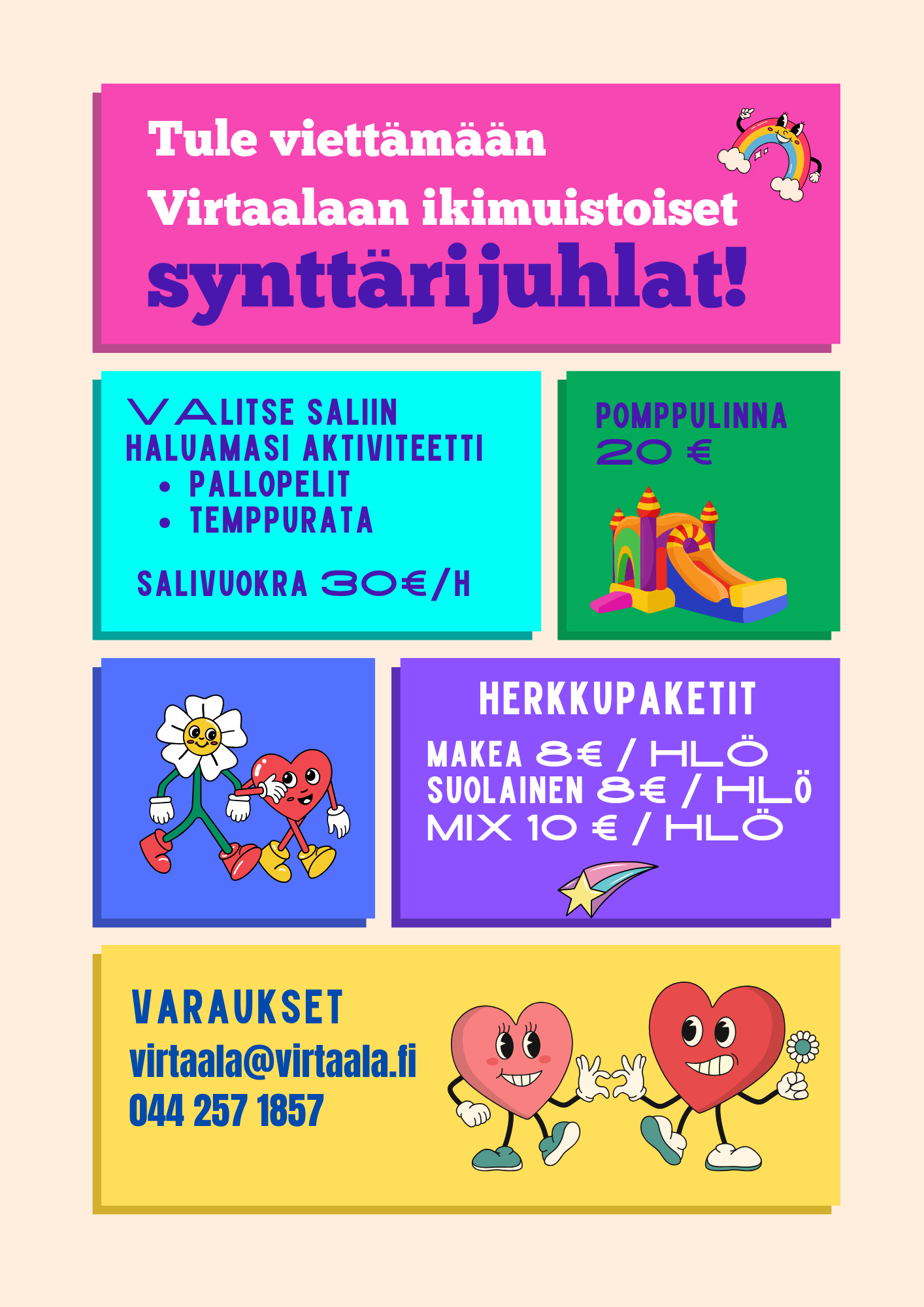 Virtaalan kahvio palvelee aukioloaikoina. Tilauksesta valmistamme lounasaterioita ja välipalatarjoiluja. Kokoustarjoilut räätälöimme toivomustenne mukaan. Virtaala on mainio paikka järjestää juhlia yms. tilaisuuksia.